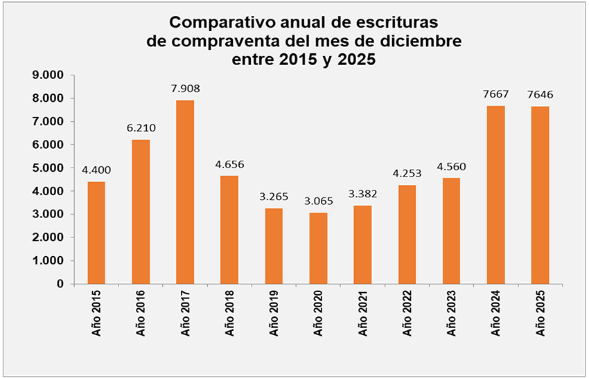 Cantidad de escrituras de compraventa realizadas en diciembre 2025