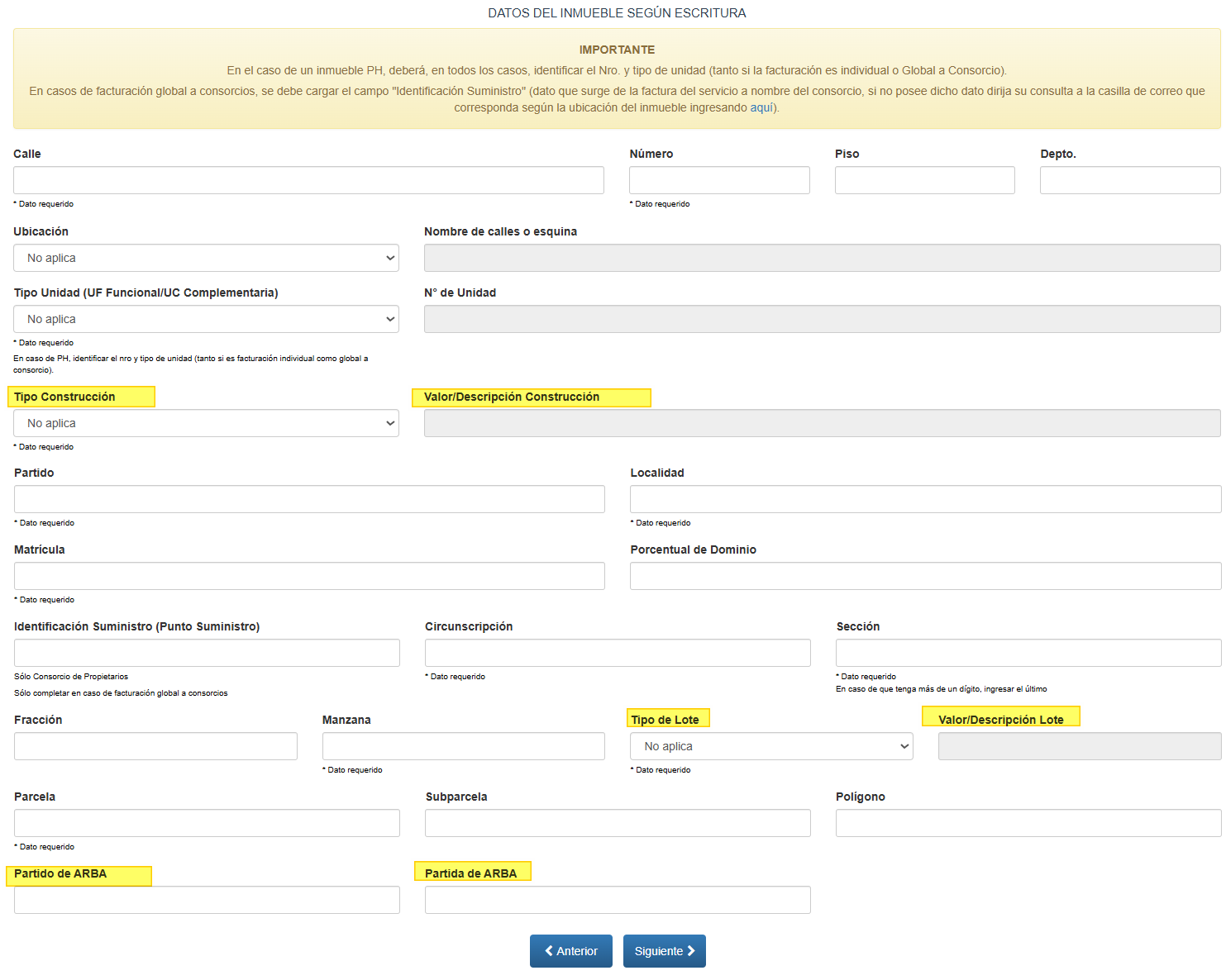 A partir de esta actualización, el sistema permitirá -en función del número de servicio de AYSA ingresado- la visualización automática de formularios diferenciados, según se trate de inmuebles ubicados en la Ciudad Autónoma de Buenos Aires o en la Provincia de Buenos Aires.